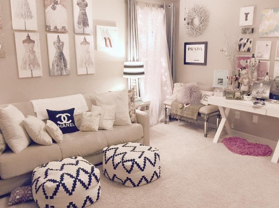When I moved my son into his dorm for the first time 2 years ago, I was so impressed with all the amazing things the kids brought with them. From cool storage pieces and textured throw pillows, to decorative artwork and small furniture pieces and plants in chic planters, they had it all. This was no Bed Bath and Beyond project…Far from it..some of the students told me that they planned their room decor for weeks, even months!!! They visited various crafts stores, online sites and local merchants to come up with just the right accessories to glamify the otherwise bland dorm rooms. Even the boys got in on it, but more so to the tune of stripes and primary colors!! Here are a few of my favorite dorm rooms. On Friday I will have a shopping guide with some fun items to decorate your student’s dorm room just in time for back to school!!!
